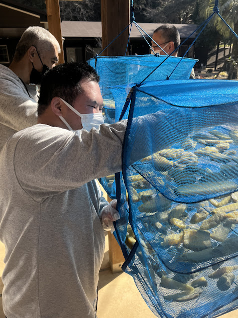 本日、昨年収穫したサツマイモ(シルクスイート)の干し芋加工を行いました!